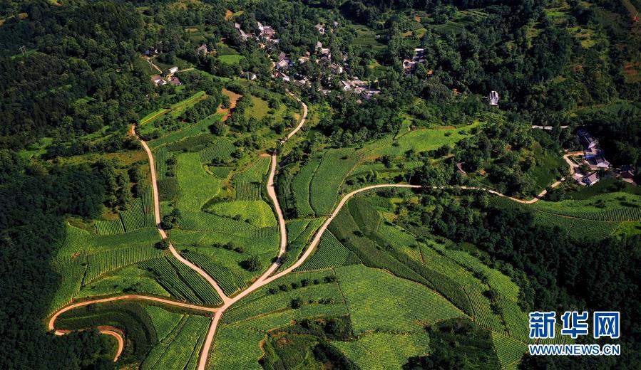 陕西省洛南县石门镇花庙村的连户路(7月27日摄,无人机照片)。新华社记者刘潇摄。