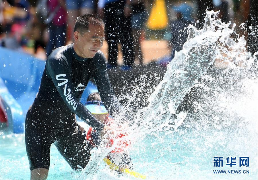 8月9日,市民在南宫五洲植物乐园户外戏水区游玩。近期,在做好新冠肺炎疫情防控的前提下,位于北京市丰台区的南宫五洲植物乐园户外戏水区对外开放。市民在戏水的同时还可以在沙滩上画沙画、在新游乐项目“丛林网绳”里穿梭跳跃,丰富暑期生活。新华社记者任超摄。