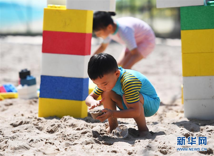 8月9日,小朋友在南宫五洲植物乐园户外戏水区旁的沙滩上玩沙子。近期,在做好新冠肺炎疫情防控的前提下,位于北京市丰台区的南宫五洲植物乐园户外戏水区对外开放。市民在戏水的同时还可以在沙滩上画沙画、在新游乐项目“丛林网绳”里穿梭跳跃,丰富暑期生活。新华社记者任超摄。
