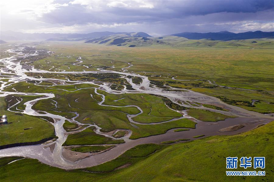 位于四川省色达县泥朵镇境内的泥拉坝湿地,藏语意为“太阳湿地”,是雅砻江源头之一。该湿地面积达100余平方公里,其中泥炭沼泽面积超过90%。湿地内水草丰美、动物众多、生态系统良好。湿地夏季鲜花盛开、碧草连天、浮云翩翩,河流在湿地上流淌宛如发辫镶嵌在绿毯上,十分壮美。新华社记者江宏景摄。