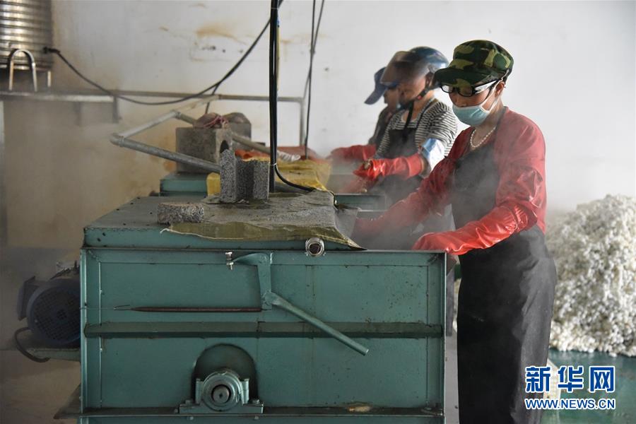 在贵州省毕节市纳雍县勺窝镇,纳雍县瑞慧桑蚕养殖发展有限责任公司工作人员在蒸煮蚕茧(7月21日摄)。新华社记者骆飞摄。
