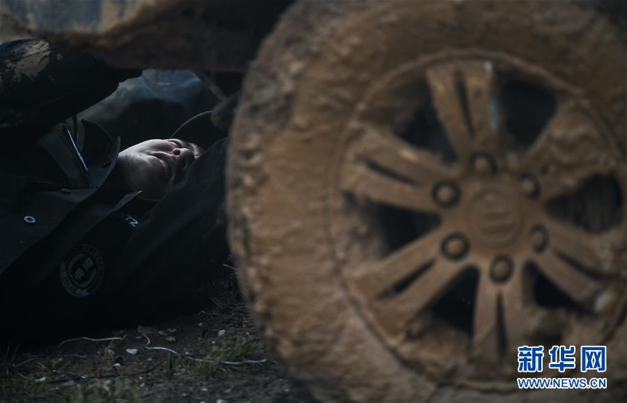 7月6日,卓乃湖保护站站长秋培扎西在可可西里地区修理车辆。新华社记者薛玉斌摄