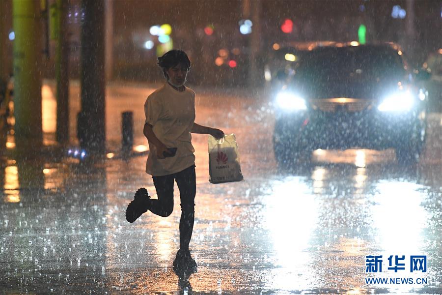 8月12日,北京市大兴区亦庄镇,一名没带雨具的市民在雨中奔跑。新华社记者 彭子洋 摄