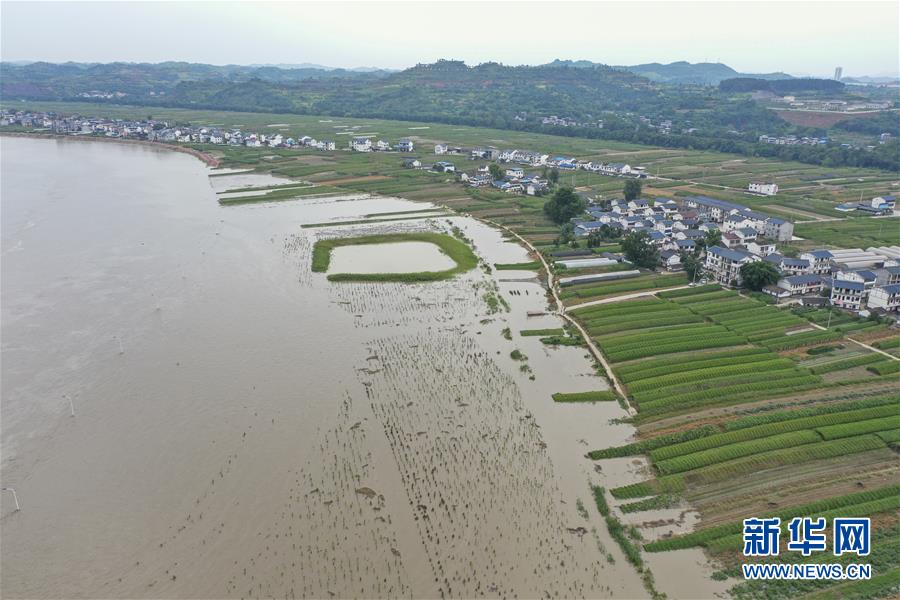 8月12日,洪水通过潼南城区。受强降雨影响,涪江潼南段迎来过境洪水。新华社记者 黄伟 摄