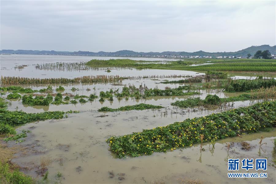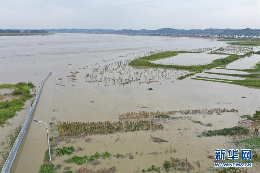 8月12日,重庆市潼南区桂林街道双坝村蔬菜基地,部分低洼地带的农作物被洪水淹没(无人机照片)。受强降雨影响,涪江潼南段迎来过境洪水。新华社记者 黄伟 摄