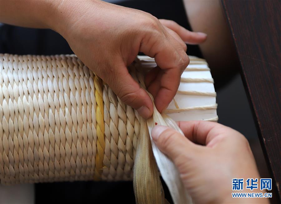 8月12日,参加草编合作社的村民使用稻草秆和玉米棒叶编制草编工艺品。近年来,吉林省洮南市福顺镇春华村在脱贫攻坚工作中坚持以特色产业扶贫为重点,推动稻田养蟹特色种养殖、手工艺草编等扶贫项目发展,通过合作社等形式构建精准防返贫长效机制,帮助困难群众实现稳定增收。新华社记者 雒圆 摄