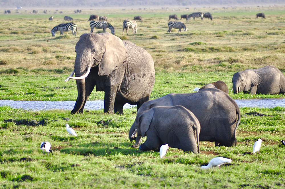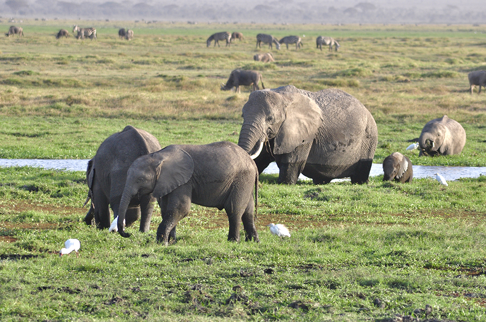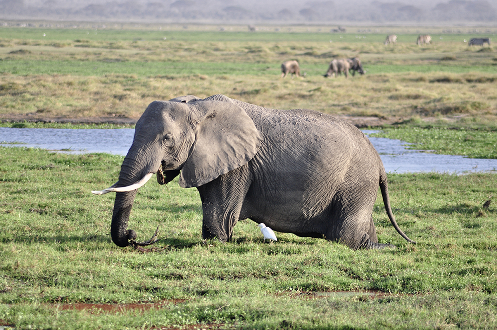 肯尼亚东南部,与坦桑尼亚接壤的安博赛利国家公园,距内罗毕240公里,因水草丰美而成为野生非洲大象的乐园。