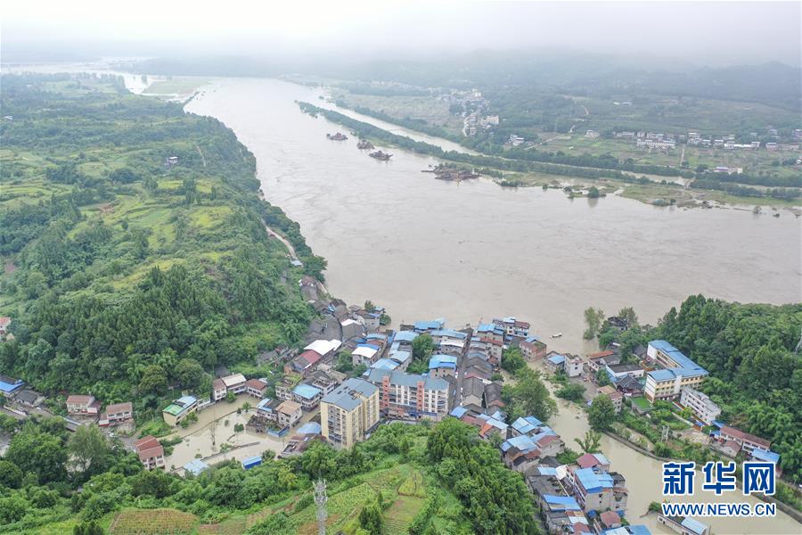 8月13日,在重庆市潼南区米心镇,涪江水位明显上涨,洪水倒灌进场镇(无人机照片)。受上游强降雨影响,嘉陵江近日出现明显涨水过程,“嘉陵江2020年第1号洪水”已在嘉陵江支流涪江形成。重庆市正式启动洪水防御Ⅱ级应急响应。据初步统计,截至13日16时30分,位于涪江畔的重庆市潼南区,沿涪江7个镇街不同程度受灾,受灾人数8209人,转移人口6658人,农作物受灾面积5579亩。新华社记者黄伟摄