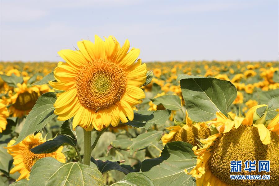 这是8月13日在景泰县寺滩乡拍摄的向日葵花海。初秋时节,位于甘肃省白银市景泰县寺滩乡的十万亩向日葵竞相绽放,金黄的葵花张开“笑脸”,迎接丰收。据介绍,当地近年来按照“标准化生产、规模化经营、企业化管理、品牌化运作”的现代农业发展理念,依托集中连片、平坦开阔的旱砂地资源,在寺滩乡建设食葵标准化生产基地,现种植面积已达十万亩,初步形成集种植、加工、科技、观光于一体的国家现代农业产业园。新华社记者范培珅摄