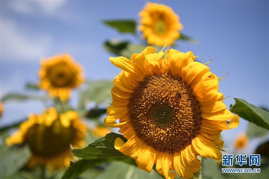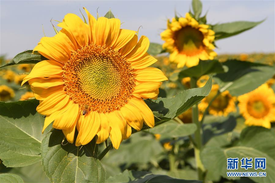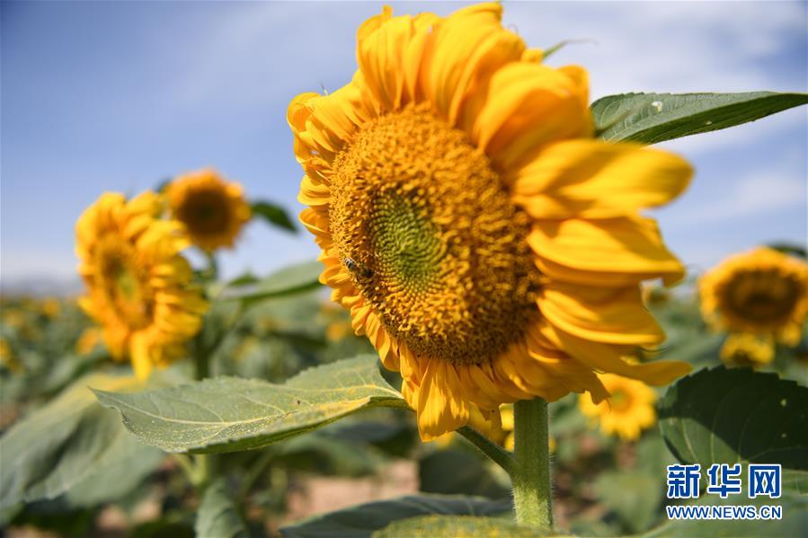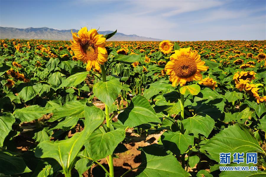 这是8月13日在景泰县寺滩乡拍摄的向日葵花海。初秋时节,位于甘肃省白银市景泰县寺滩乡的十万亩向日葵竞相绽放,金黄的葵花张开“笑脸”,迎接丰收。据介绍,当地近年来按照“标准化生产、规模化经营、企业化管理、品牌化运作”的现代农业发展理念,依托集中连片、平坦开阔的旱砂地资源,在寺滩乡建设食葵标准化生产基地,现种植面积已达十万亩,初步形成集种植、加工、科技、观光于一体的国家现代农业产业园。新华社记者范培珅摄