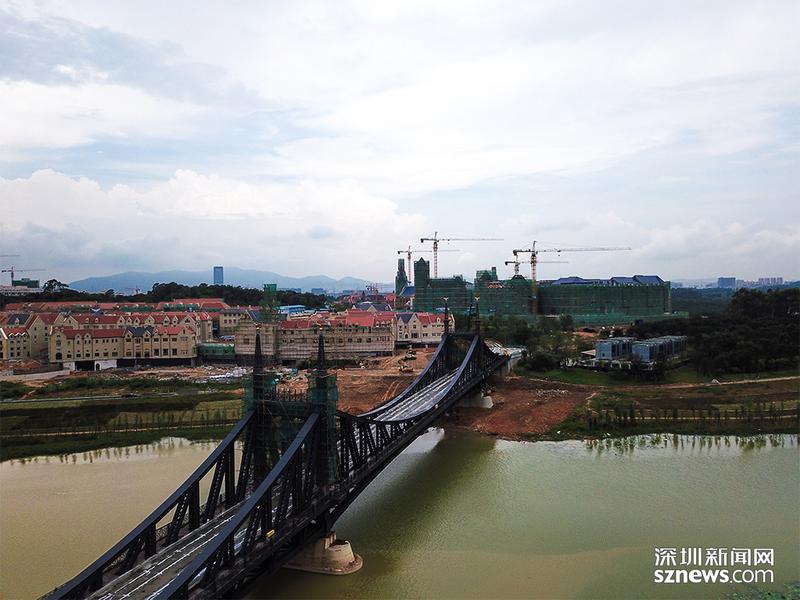 别具特色的铁桥承接了连接华为“欧洲小镇”内两座小岛的重任