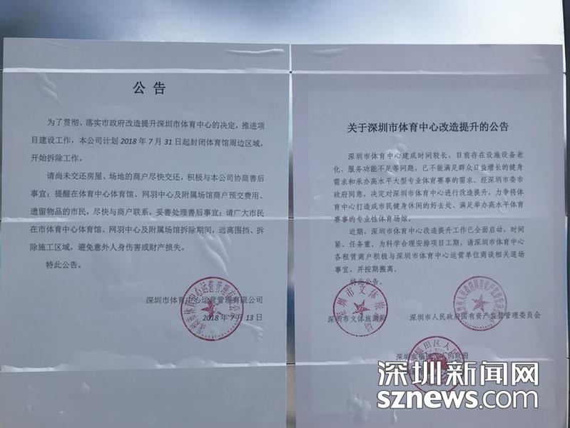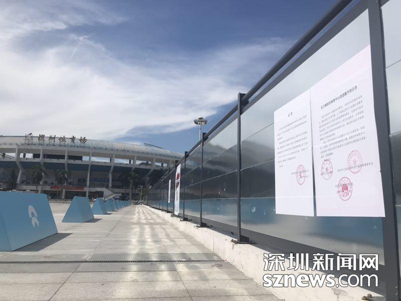 在进入深圳体育场的路上,围挡张贴了改建公告