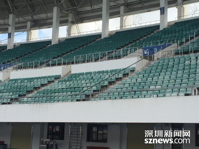 深圳体育场观众座椅经多年风吹日晒,褪色明显