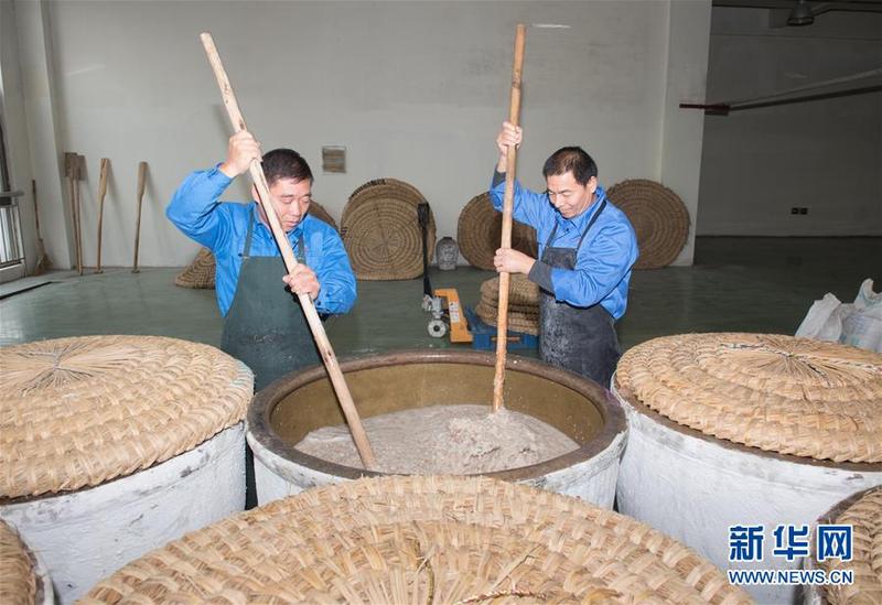 11月21日,工作人员在绍兴女儿红酿酒有限公司酿酒厂房用竹耙搅动糯米,使其与麦曲和酒母充分混合。 浙江绍兴一带有“生女酿好酒、婚嫁宴宾客”的习俗,所酿之酒称“女儿红”。在绍兴市上虞区东关街道,一家酿酒厂仍保留着传统的黄酒生产线,恪守着近20道酿造工序,延续着传统黄酒的酿制技艺和生女必酿“女儿红”的文化习俗。 黄酒是中国最古老的酒种之一,传统黄酒仅在冬季取鉴湖水和糯米酿制,所得之酒澄澈馥郁。 新华社记者翁忻旸摄