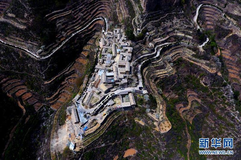 3月31日无人机拍摄的上九山村景色。山东省邹城市石墙镇上九山村始建于宋代,是一座依山而建的石头村,有明清建筑风格的古民居300余套,古朴传统的村貌吸引众多游客。2019年1月,上九山村入选第七批中国历史文化名村。 新华社记者 王凯 摄