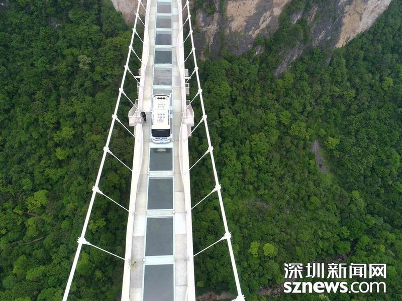 巴士挑战湖南张家界玻璃桥 首条无人驾驶公交线路将开通