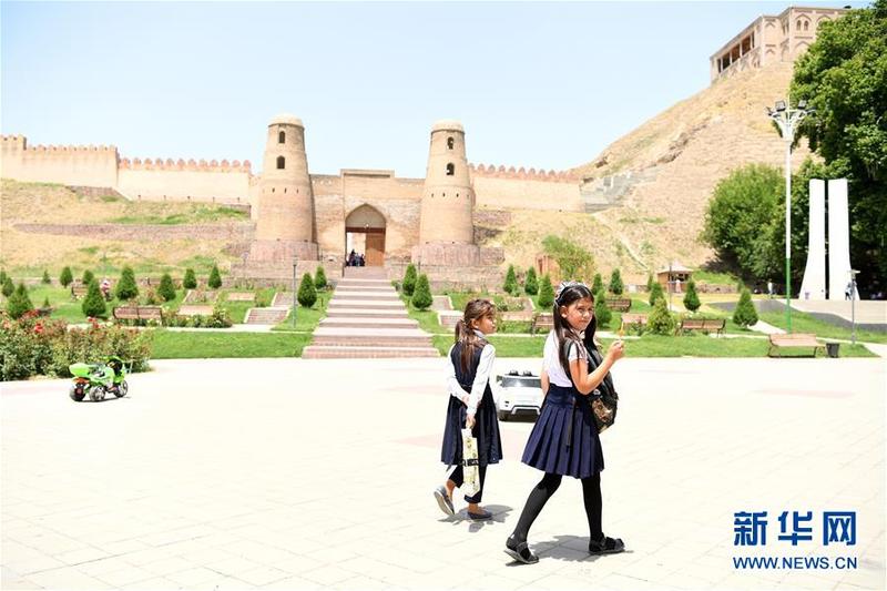 6月12日,在塔吉克斯坦首都杜尚别以西的吉萨尔,两名学生从吉萨尔城堡前走过。 吉萨尔城堡由煅烧过的红色砖块砌成,位于塔吉克斯坦首都杜尚别以西约25公里处,有着3000多年的历史。据苏联科学院和塔吉克斯坦学者考证,张骞从大宛回国时曾经过这里,收集了大量关于中亚腹地大宛、大夏、粟特地区的资料,为后世印证丝绸之路的繁盛提供了重要的地理信息。 新华社记者沙达提摄