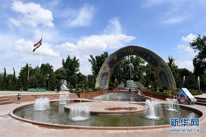 这是6月11日在塔吉克斯坦首都杜尚别拍摄的鲁达基公园。 新华社记者沙达提摄