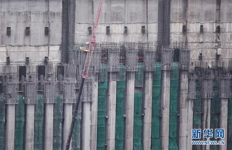 这是6月26日在四川省宁南县拍摄的白鹤滩水电站建设工地。 目前,白鹤滩水电站正加紧建设。 新华社记者 薛玉斌 摄