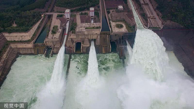 2018年9月11日,甘肃临夏,刘家峡水库泄洪力降水位。今年主汛期以来,受黄河上游持续大范围降雨影响,刘家峡水库入库流量大幅增长,为确保黄河中下游安全度汛,刘家峡水电厂按照黄河防总调度要求,不断调控下泄流量,全力做好防汛度汛工作。