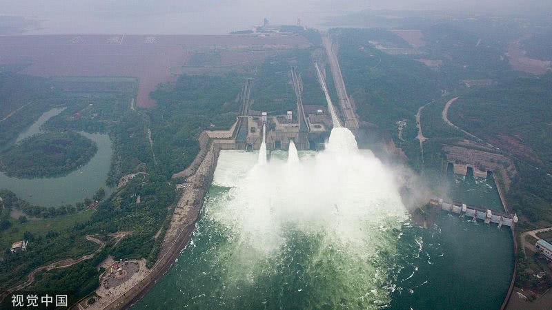 2018年7月5日,三峡大坝今年首次开闸泄洪。当天,三峡大坝开启5个泄洪孔下泄洪水,至中午12点左右减至2个。