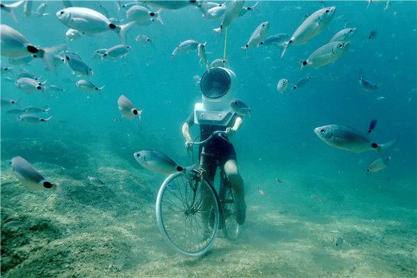 当地时间2017年8月1日,克罗地亚普拉,潜水员在当地的水下公园潜水。