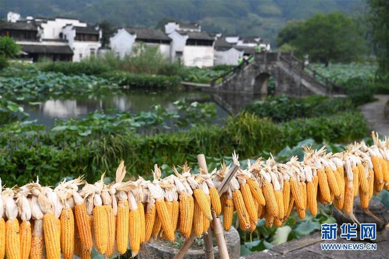 这是呈坎村村民晾晒的玉米(8月28日摄)。新华社记者刘军喜摄