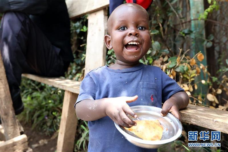 9月1日,在肯尼亚内罗毕的一个街边摊位,一名儿童品尝萨摩萨。萨摩萨是一种三角形的油酥点心,由薄面皮包裹豆类、蔬菜及牛羊肉馅后,下锅油炸而成。作为肯尼亚及东非地区的传统面食,它经常出现在当地民众的食谱和餐桌上。如今,肯尼亚的部分中餐厅也开始制作萨摩萨,以满足顾客的需求。新华社记者王腾摄