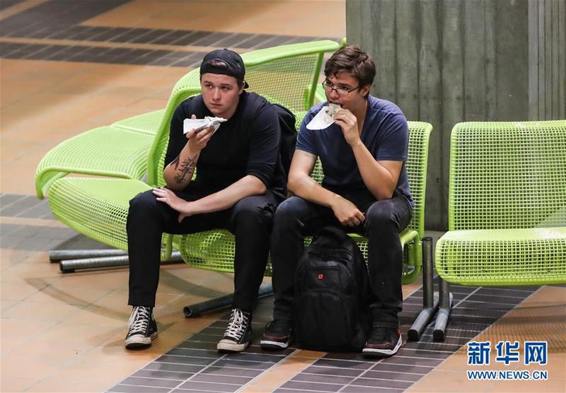9月11日,在德国首都柏林,两名男子品尝可丽饼。新华社记者单宇琦摄