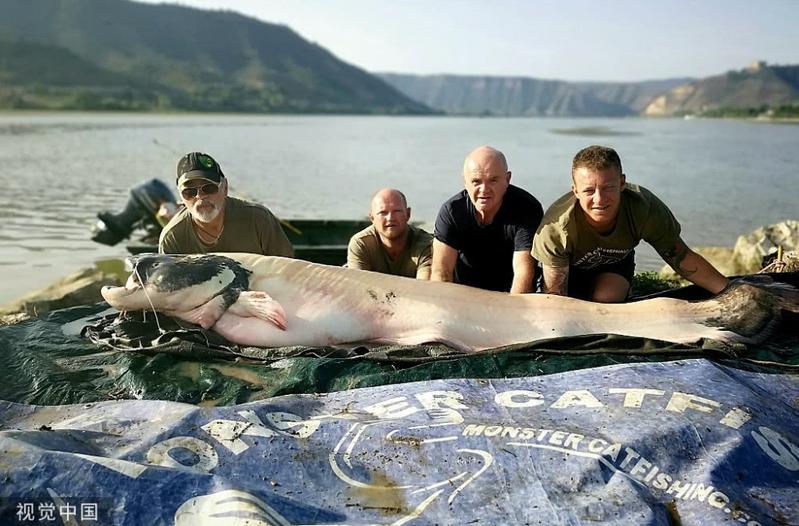 9月18日消息,近日,英国当地几名钓鱼爱好者在他们钓鱼之旅的最后一天,捕到了一条重达230磅(约合104.33千克)的巨型鲶鱼,并欣喜地与“战利品”合影留念。