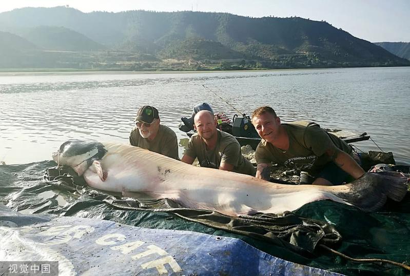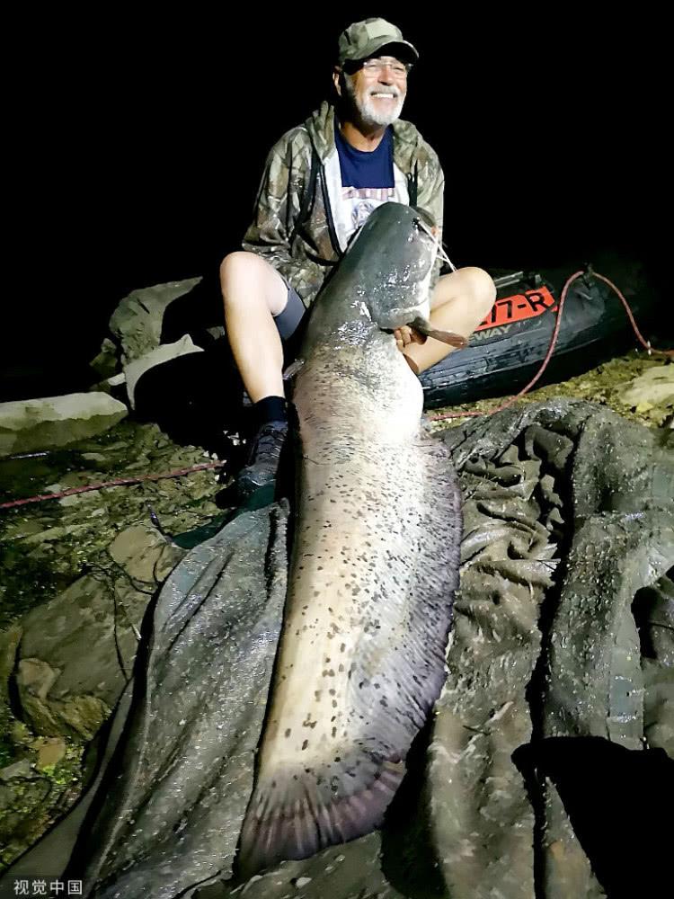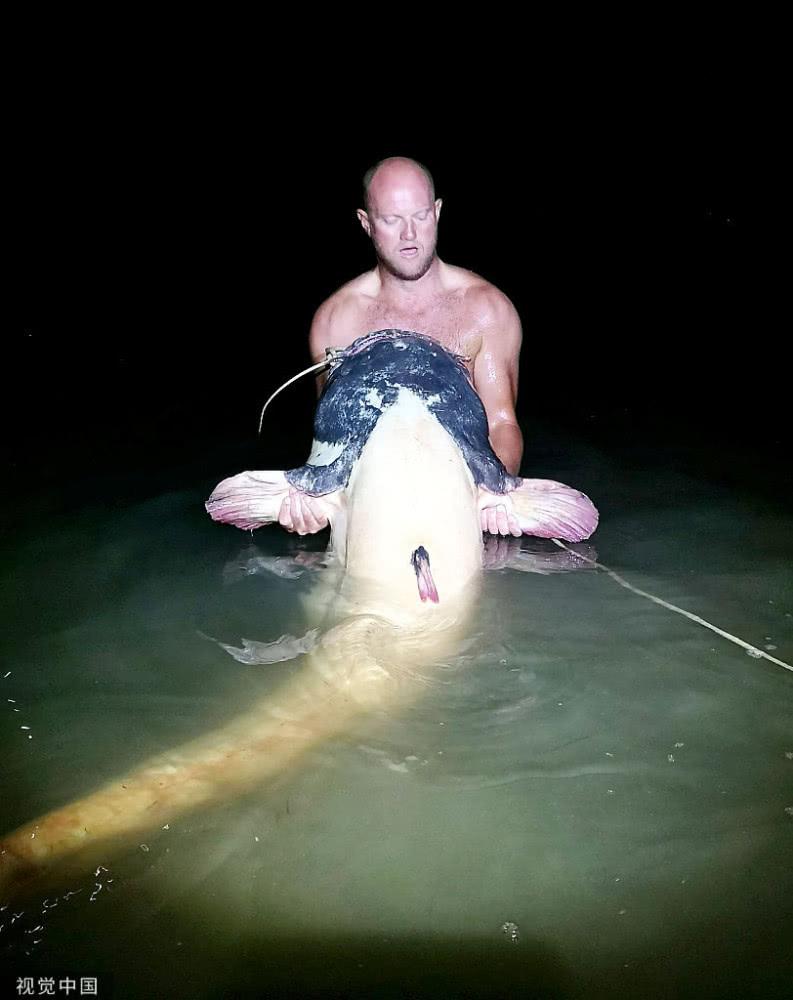 钓鱼爱好者捕获巨型鲶鱼,重达208斤,与战利品合影超兴奋
