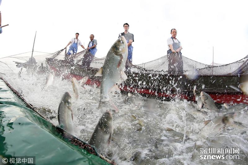 2018年6月26日,江苏省常州市嘉泽镇捕捞村的渔民组织夏季捕捞,一网鱼达五万余斤,以鲢鱼为主,供应市场需求。夏捕的鱼价较平时有所上涨,渔民粗略估计可增收上万余元。