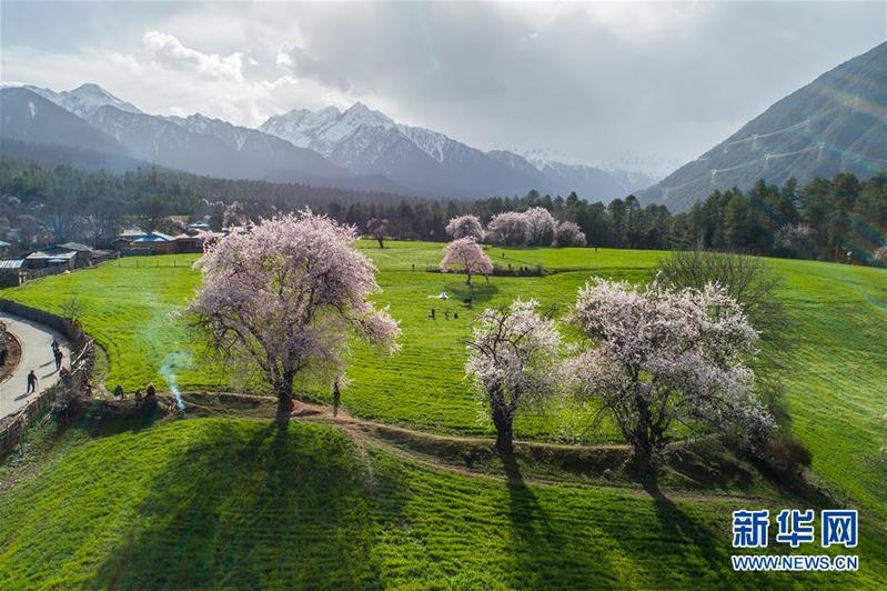 拉萨周边山谷的桃花盛开(4月18日摄)。新华社记者普布扎西摄