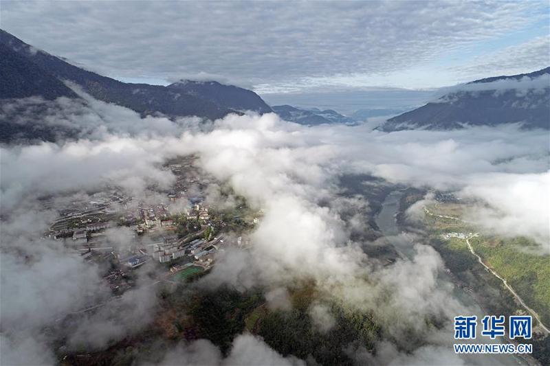 这是云海笼罩的西藏墨脱县(4月9日无人机拍摄)。新华社记者李鑫摄