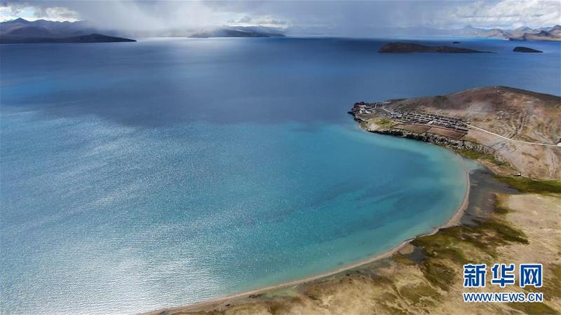 这是普姆雍错湖边的堆瓦村(9月19日无人机拍摄)。普姆雍错位于西藏山南市浪卡子县境内,海拔五千多米,在周围雪山融水的滋润和阳光的照耀下,美若少女。新华社记者晋美多吉摄