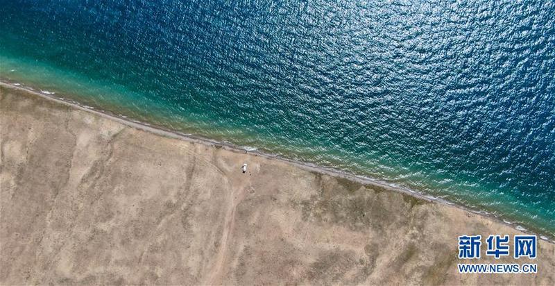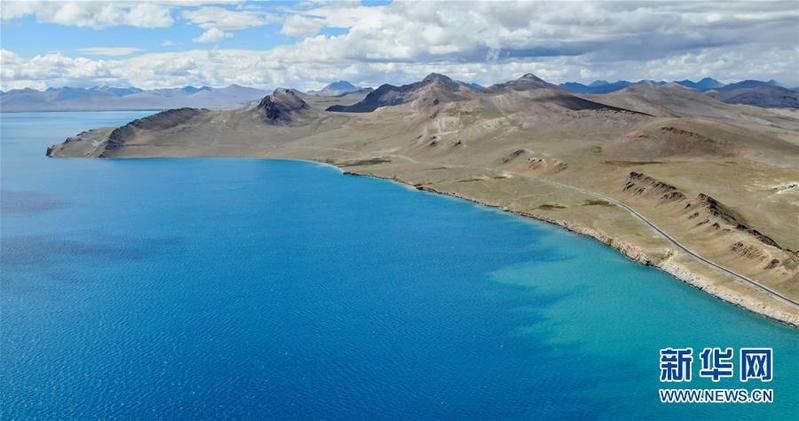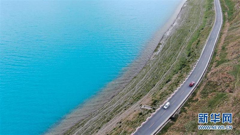 普姆雍错湖紧挨着公路,是自驾游的理想目的地(9月19日无人机拍摄)。新华社记者晋美多吉摄