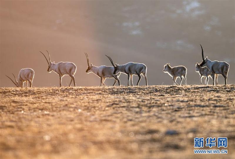 西藏羌塘自然保护区内的藏羚羊(2019年1月31日摄)。新华社记者普布扎西摄