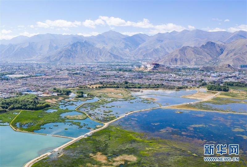 西藏拉鲁湿地风光(6月5日无人机拍摄)。新华社记者普布扎西摄
