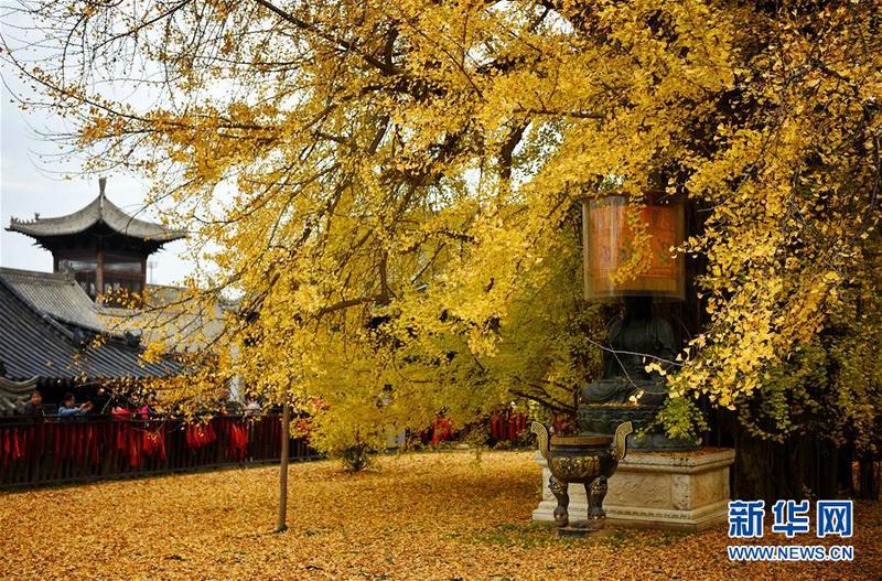 11月11日拍摄的罗汉洞村古观音禅寺内的千年银杏树。新华社记者刘潇摄
