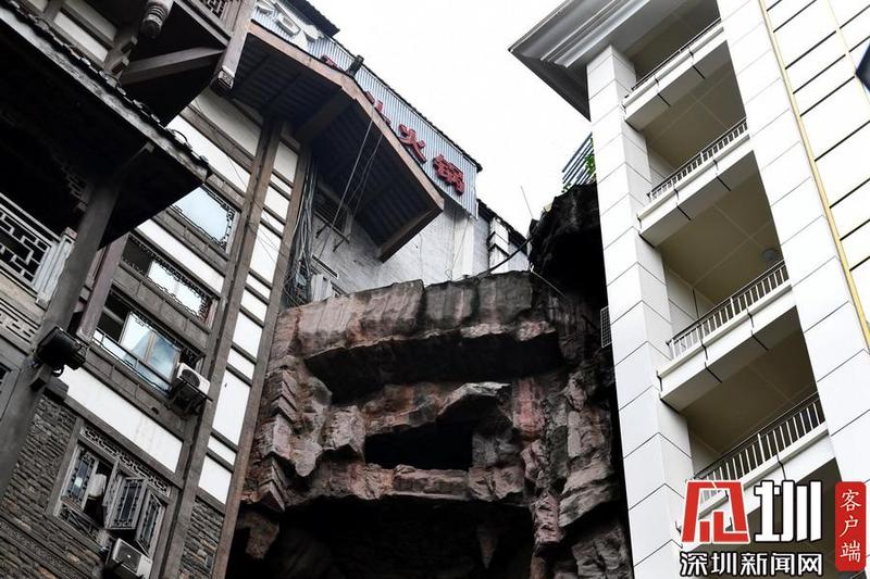 2019年10月24日,重庆渝中区,两栋楼房中间就是断崖,断崖上面是车来车往的沧白路,而下方则是人来人往的洪崖洞景区,给人一种魔幻8D既视感,引发外地游客感叹。