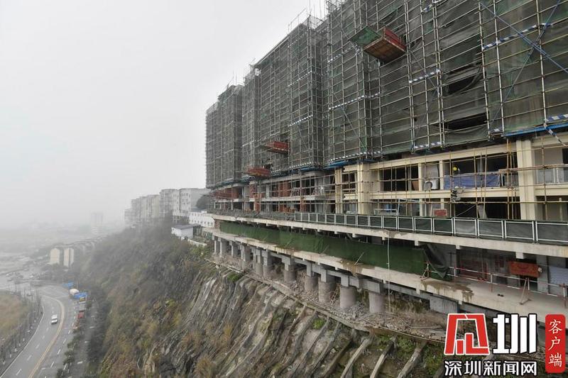 2019年1月22日,重庆市渝北区上湾路附近,一处楼房直接修建在了一座山崖上,从侧面看去十分险峻,但重庆人已经习以为常,笑称这是崖景房。