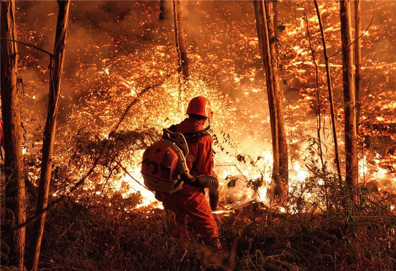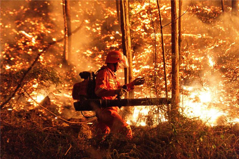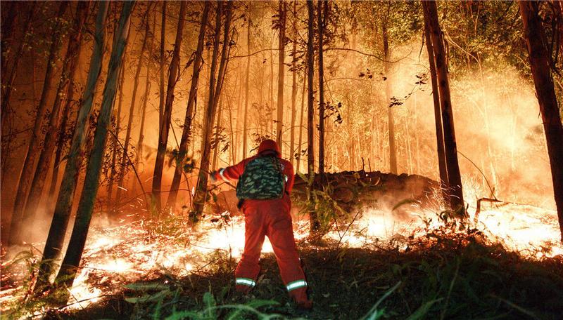 千名救援人员进山筑起“截火带” 广东佛山高明山火已得到控制