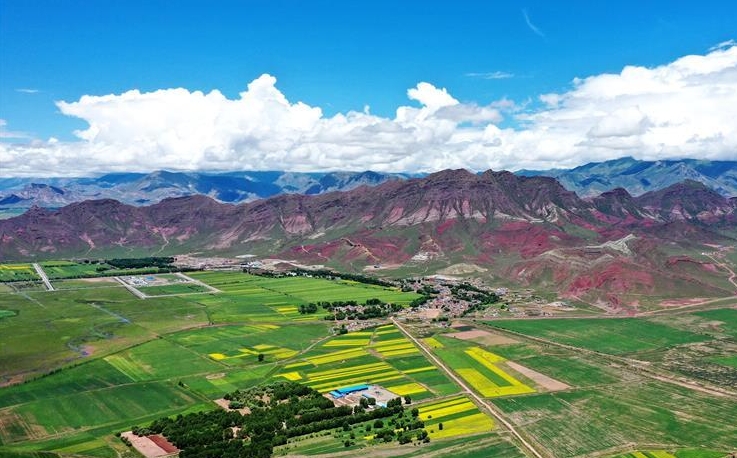 夏日时节,这里水草丰茂,绿意盎然,河流、村落、农田组成一幅美丽的田园画卷。