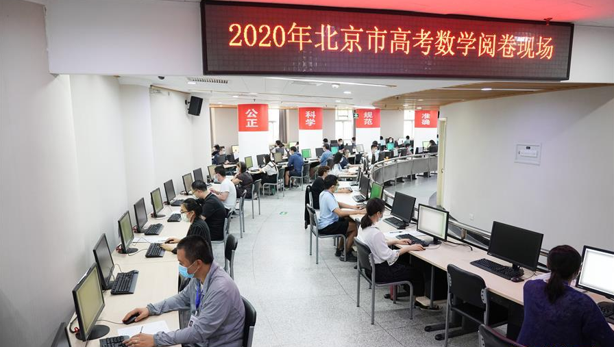 7月16日,评卷老师在位于清华大学的高考数学阅卷现场用计算机系统阅卷。