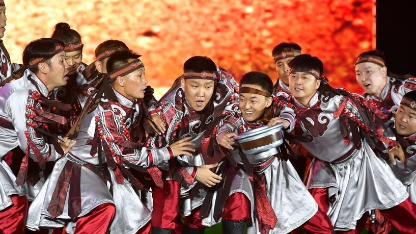 山南市扎囊县桑耶镇乃卡村村民观看文艺演出队的表演。