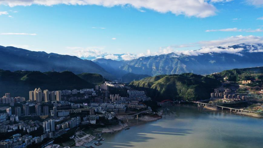 7月2日拍摄的重庆巫山县城一带景象(无人机照片)。