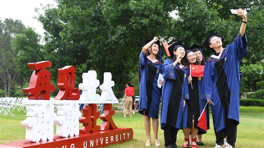 7月2日拍摄的北京大学2020年毕业典礼办公楼西侧广场会场。