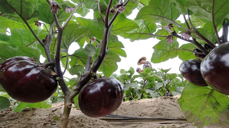 6月18日,唐山市丰南区黄各庄镇双坨村农民在大棚内收获蔬菜。