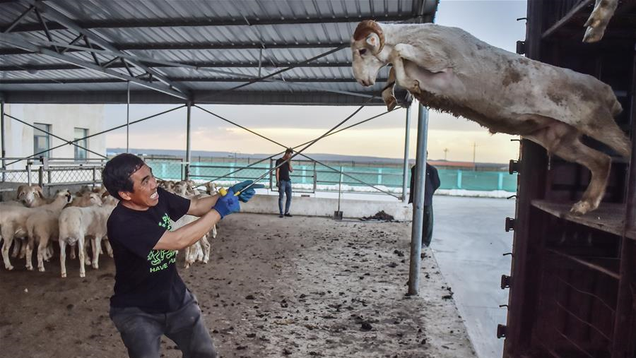 在新疆察布查尔锡伯自治县一处生态扶贫林,当地贫困户将修剪完的树枝拉回家喂牲畜(6月16日摄)。