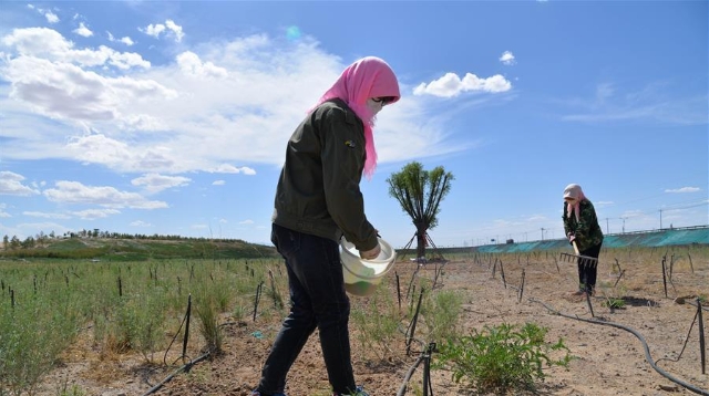5月28日,内蒙古巴彦淖尔市临河区新华镇新乐村村民在田间劳作。